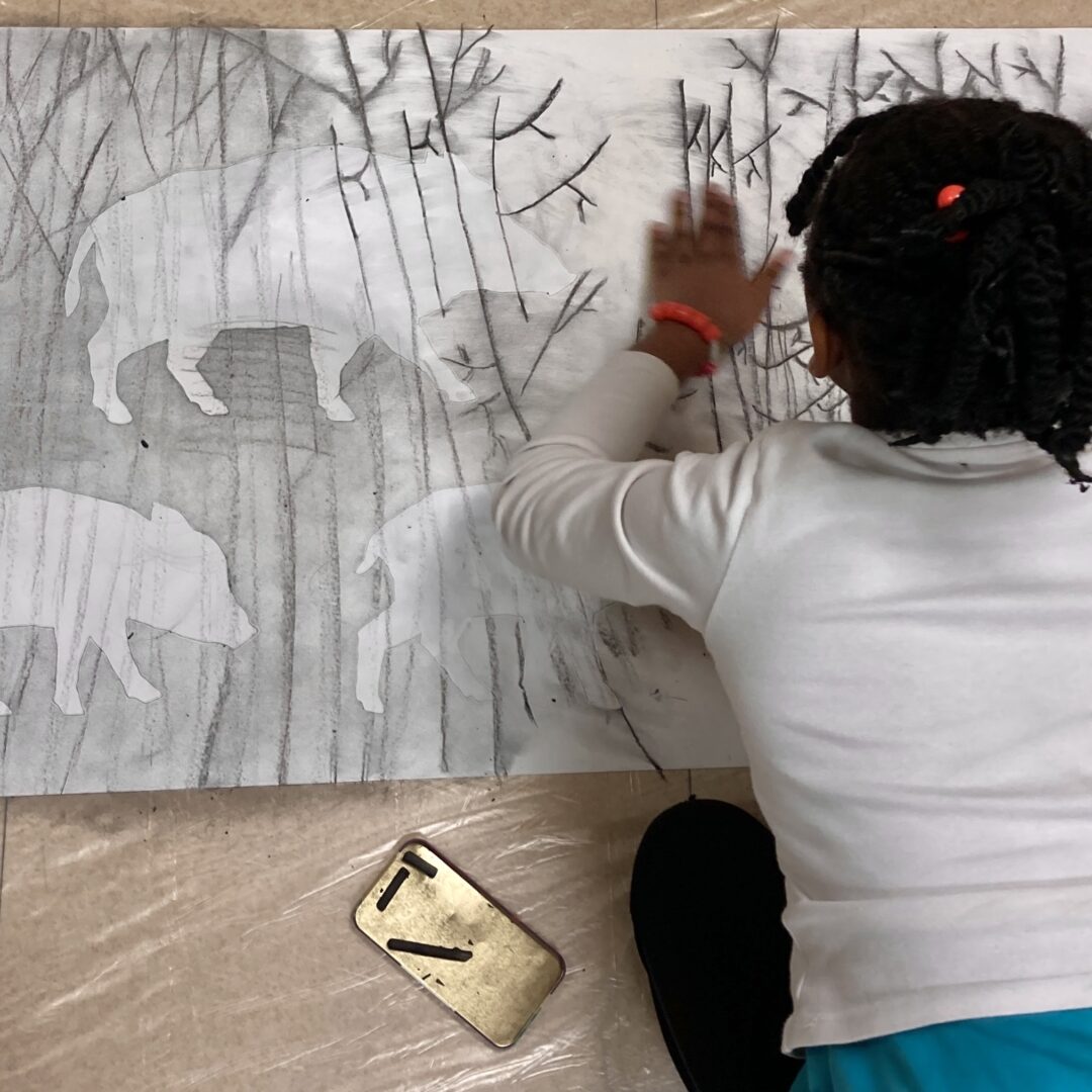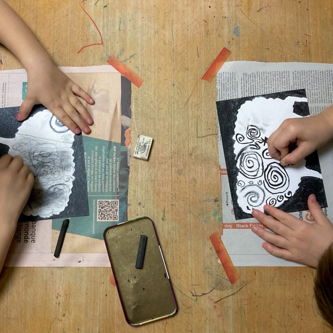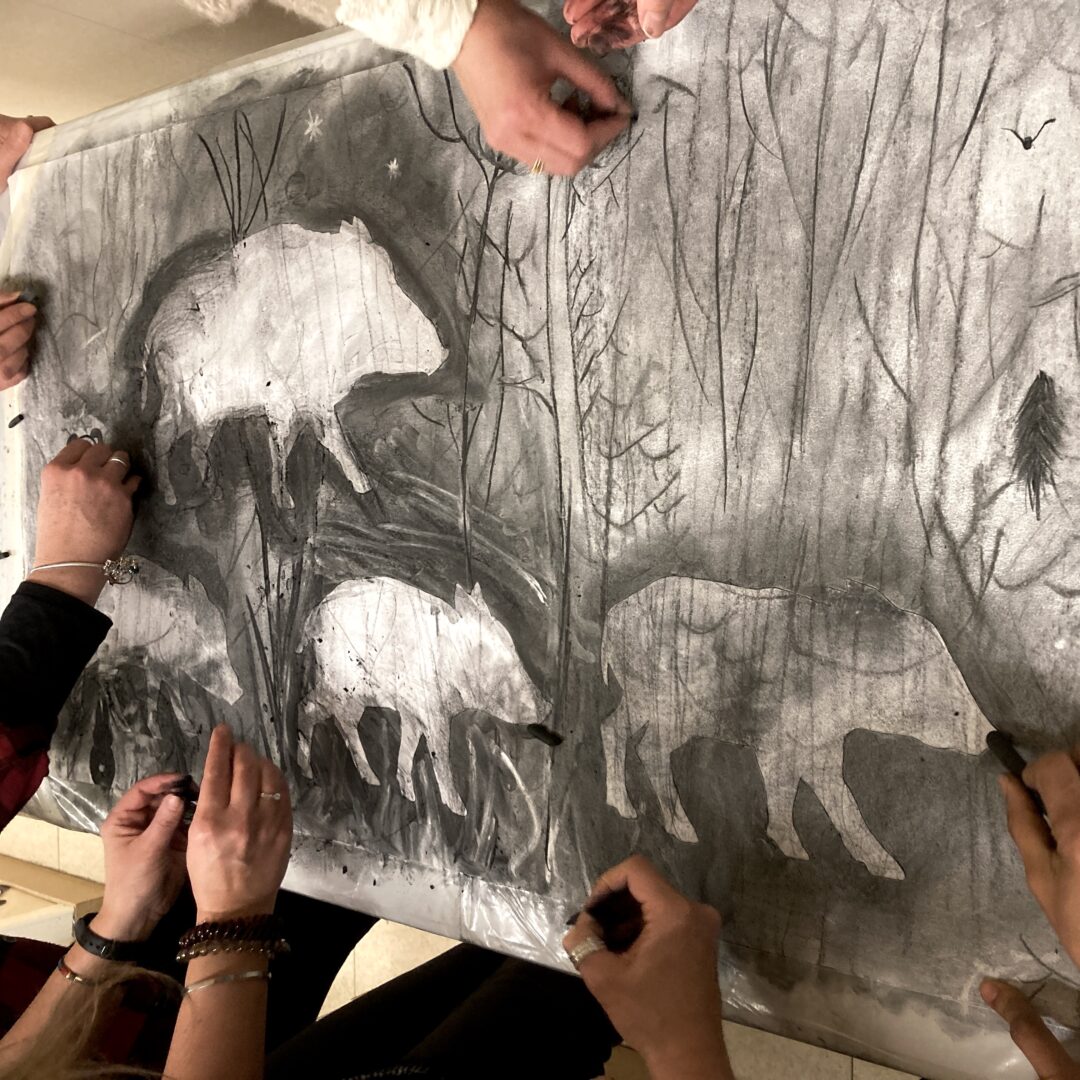 Ateliers de dessin et fresque collective autour du fusain, la technique utilisée dans ses deux derniers livres : Nuit de chance et Troupeau (La Partie) se sont menés avec l’artiste. De la découverte de cet outil à son usage, en passant par sa fabrication artisanale, place à la créativité de chacun·e ! Pour l’artiste, une manière de poursuivre son exploration en compagnie des enfants, des parents accueillis à la PMI et des professionnel·les. Jusqu’en février 2026;