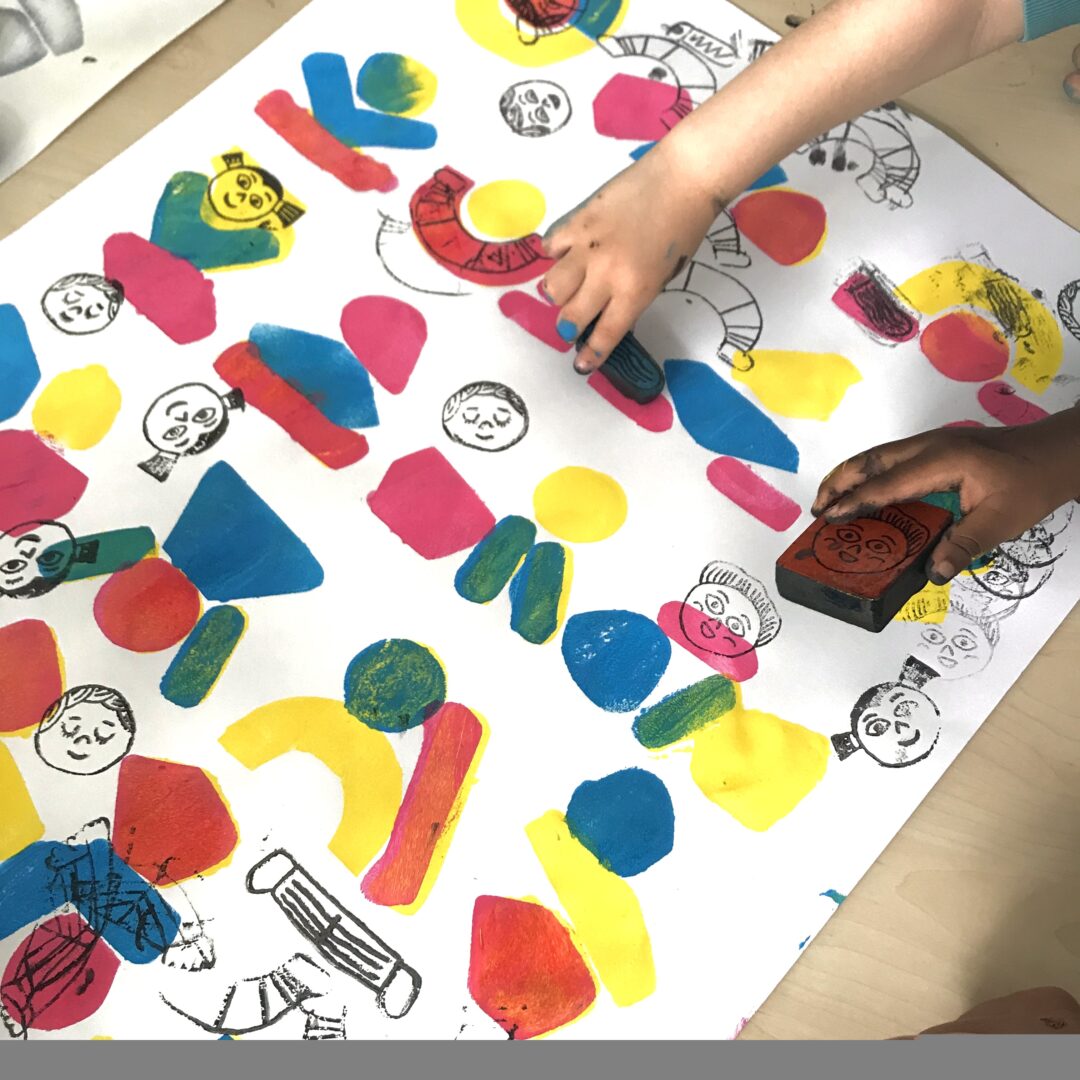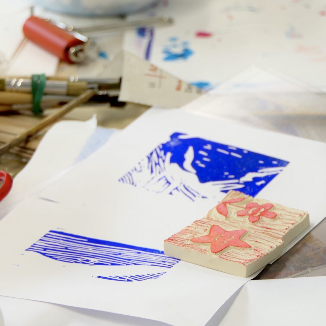 Une journée de formation à la gravure en avril, des ateliers menés en direction des petits, des outils de médiation, réfléchis en collaboration avec les illustrateur·rices : tampons, puzzles… et un guide permettant de mener des ateliers.