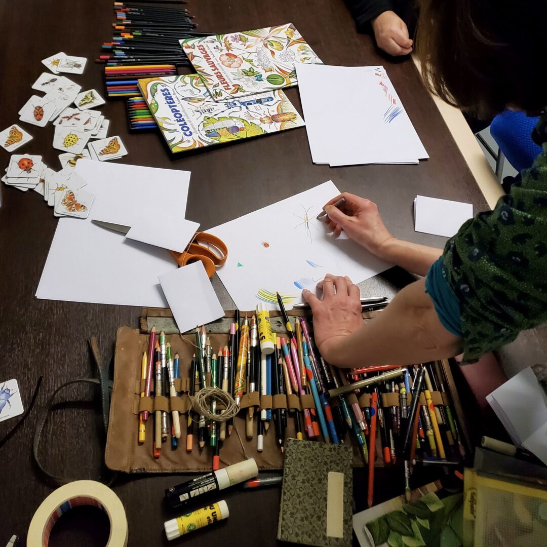 À partir de différentes techniques (collages, crayons…), Isabelle Simler invite à partager le dessin naturaliste, avec enfants, parents, et professionnel·les. Fresque collective et constitution d’un carnet autour du jardin de la crèche rythmeront les ateliers à destination des adultes principalement et des enfants. Jusqu’en juin 2026.